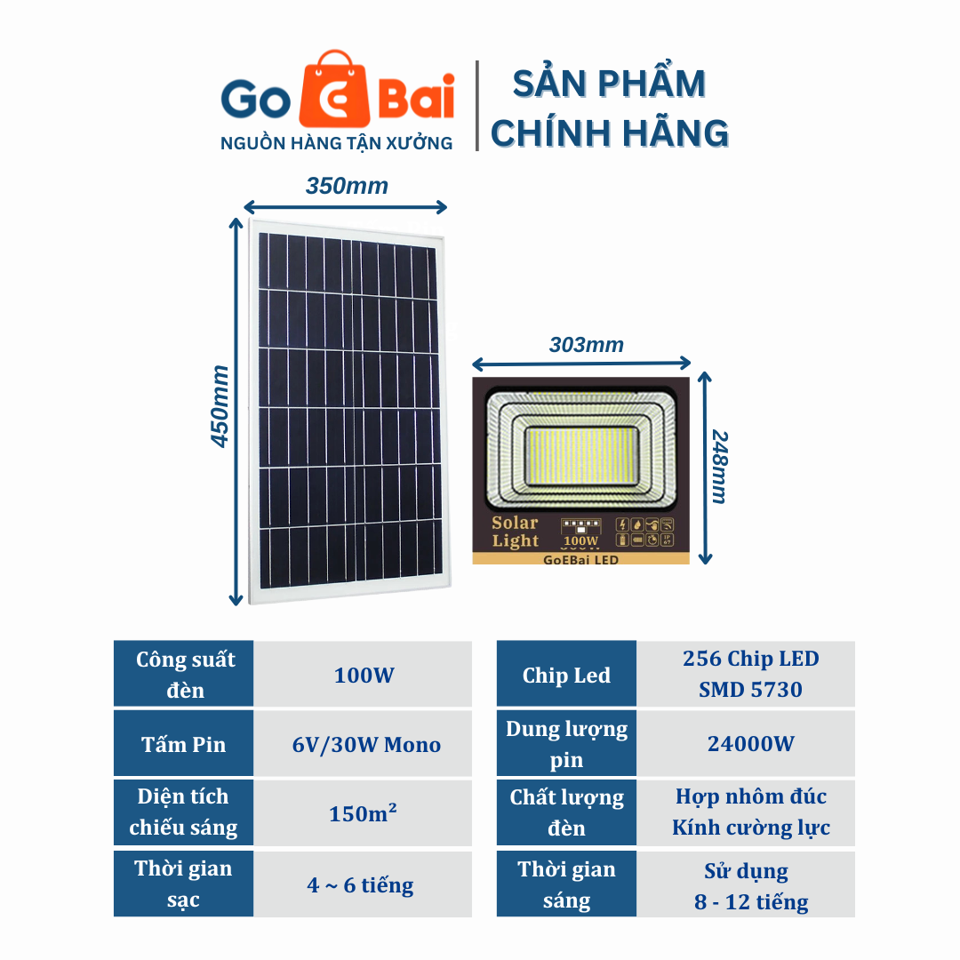 ĐÈN PHA NĂNG LƯỢNG MẶT TRỜI 100W – GOEBAI LED